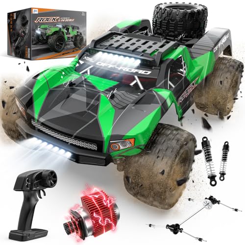 RACENT Remote Control Monster Truck 1:16 Scale 4x4 Off Road Trucks 2.4Ghz 40KPH 4WD All Terrain High Speed Remote Control Car with Two Batteries Electric Vehicle (Green)