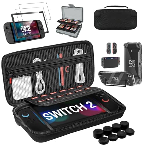 HEYSTOP Switch 2 Case for Nintendo Switch 2, 16 IN 1 Switch 2 Accessories with 4 Joy-Con Grips, Portable Protective Travel Case with Screen Protector, Thumb Grips