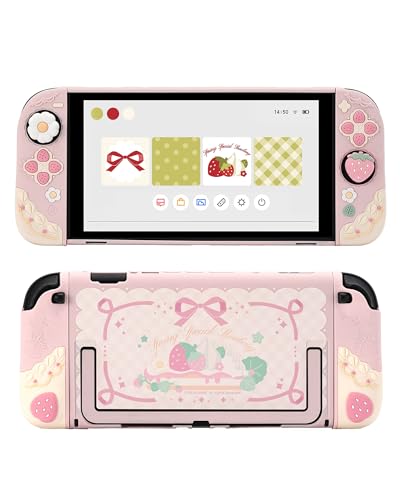FANPL Cute Carrying Case for Nintendo Switch 2, Protective Cover Accessories Bundle with Travel Skin, Hard Shell, Adjustable Shoulder Strap, Thumb Grips, Screen Protector (Pink Strawberry)