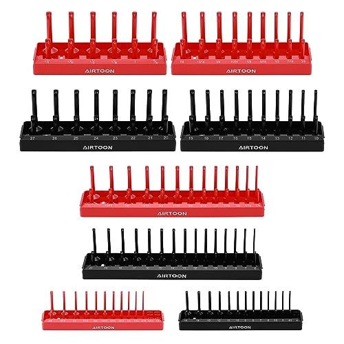 AIUITIO Socket Organizer Tray Set,8-Piece Socket Holder Set Includes 2PCS 1/4", 4PCS 3/8", 2PCS 1/2" Drive Metric SAE Socket Trays, Store 226 Pieces Standard and Deep Sockets