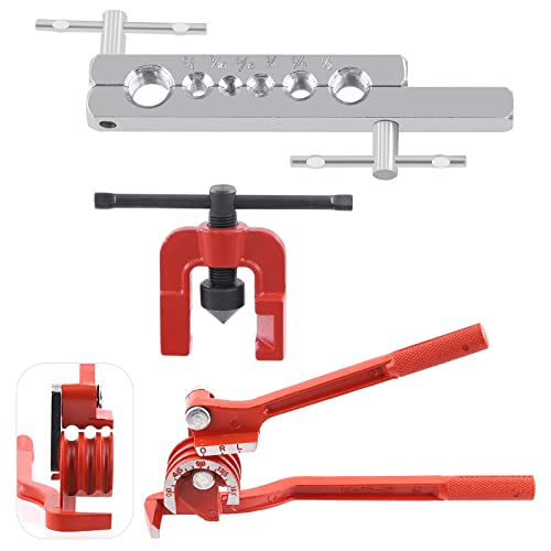 Orion Motor Tech Hydraulic Flaring Tool Kit, Universal Brake Flaring Tool Set with Tubing Cutter, 45掳 Single & Double Flaring Tool Kit with Deburring Tool, Brake Line Flaring Tool for ISO Bubble Flare