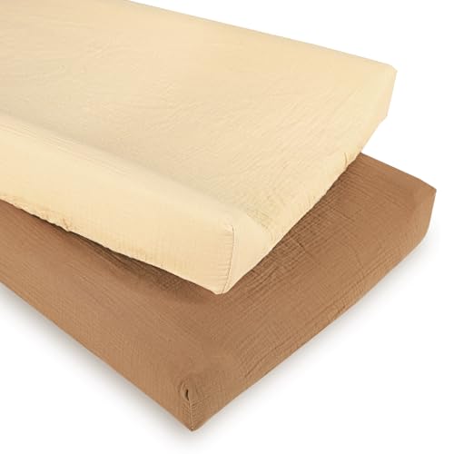 Changing Pad Cover for Baby Boy Girl 2 Pack, Muslin Changing Table Pad Covers with Boho Style, Neutral Nursery Bedding Essentials Soft and Breathable (Vintage Blossom & Pink)