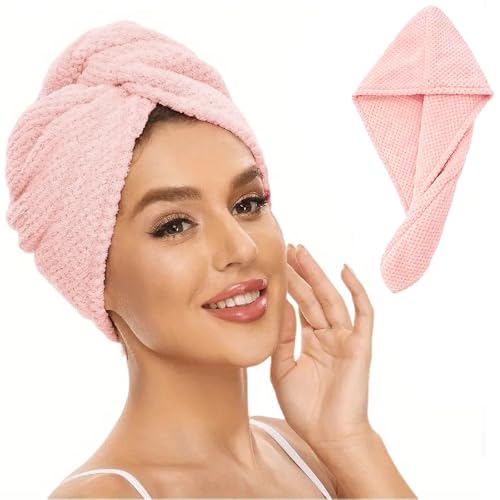 YFONG X-Large Hair Towel Wrap for Women, Super Absorbent Microfiber Hair Towel for Curly Hair, Fast Drying Hair Turbans with Elastic,Hair Drying Towel Wrap for Hair Care 30" X 40" (White)