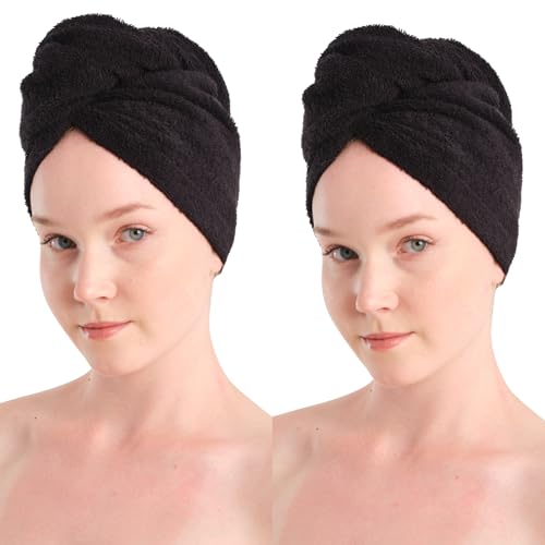 Sunland Microfiber Hair Towel Wrap for Women 2 Pack Super Absorbent Quick Dry Magic Hair Turban for Drying Long Hair Soft and Large 20 inch X 40 inch Black