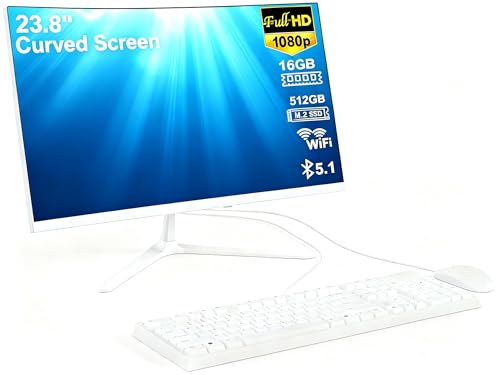 27 inch All-in-One Desktop Computer,Curved FHD Display, All-in-One Computer Alder Lake N100 (Up to 3.4GHz) 16GB RAM 512GB ROM HDMI Bluetooth 4.0 Dual Band WiFi with Wired Mouse and Keyboard