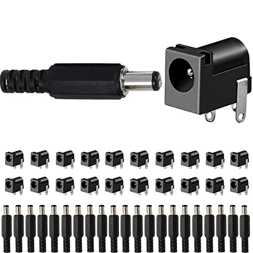 DAOKAI 20PCS DC-005 Power Jack 5.5mm x 2.1mm 3 Pins PCB Mount DC Socket Connector Black with鈥 20PCS 5.5 x 2.1mm DC Male Plug