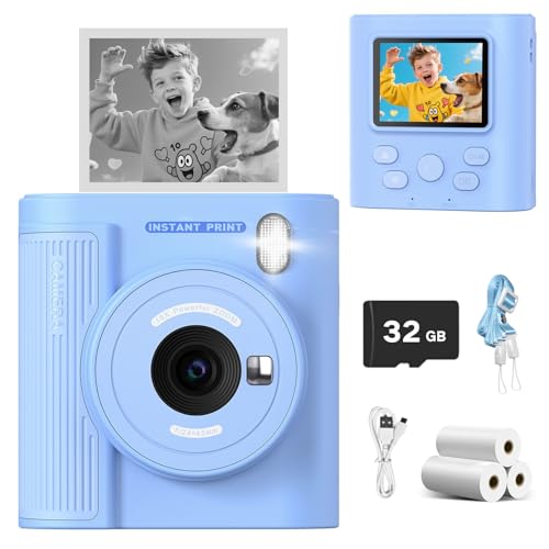 Gugxiom Kids Instant Print Camera, Mini Printer Camera for Kids, Lens 180掳 Flip, 32GB Card, Birthday Gifts for Girls Boys, Chritmas Present for 3 4 5 6 7 8 9 10 11 12 Year Old Child (Christmas)