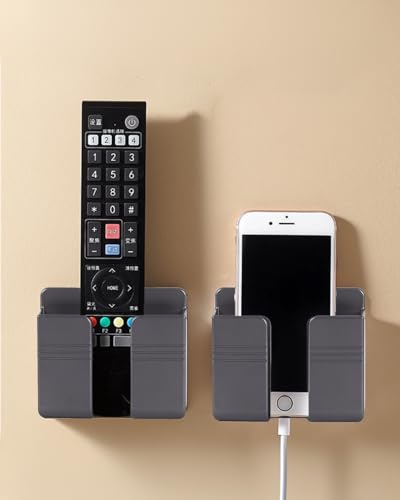 HKYLRAT Wall Mounted Phone Holder, 2-Pack Clear Plastic Cell Phone Stand with Charging Hole, Smartphone Accessories for iPhone and Android (Grey)