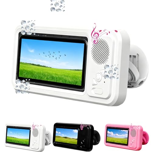 Suzii Wireless Bluetooth Shower Phone Holder Waterproof, Speaker, 360掳 Rotation, Retractable Adjustable Shower Case Holder for Bathroom Wall, Kitchen, Gift for Friends 4"-6.8" Cell Phone-Black