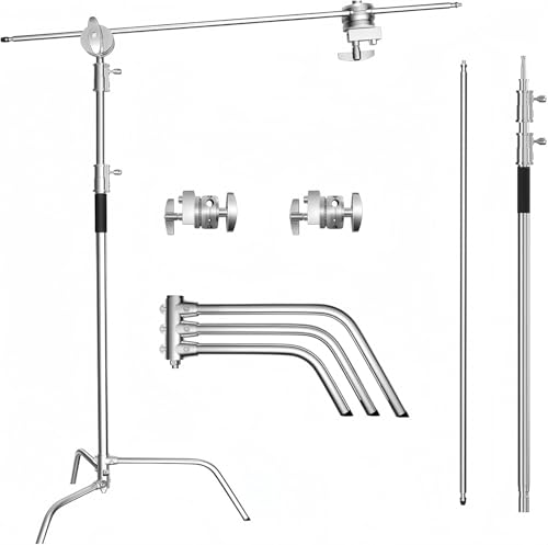 Noliven C Stand Light Stand with Boom Arm, 100% Stainless Steel, Max Height 11ft/335cm, Photography Light Stand with 4ft/128cm Holding Arm, 2 Grip Head for Studio Monolight, Softbox, Reflector