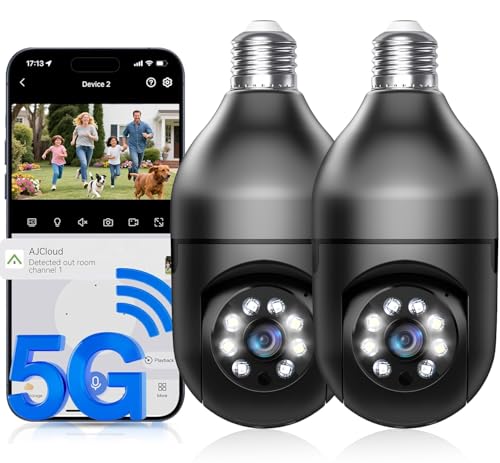 Jennov 2.4Ghz/5 Ghz WiFi Light Bulb Security Camera Wireless Outdoor - 2K Cameras for Home Security Outside, Light Socket Indoor Camera