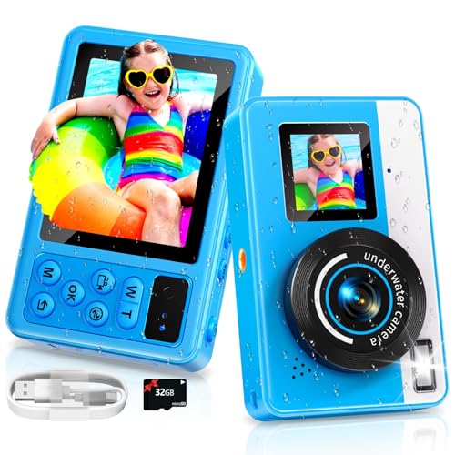 Waterproof Camera, 11FT Underwater Camera 1080P Full HD Underwater Camera with 30 Megapixel 16x Digital Zoom, Underwater for Snorkeling Waterproof Digital Camera for Kids锛圔lue锛