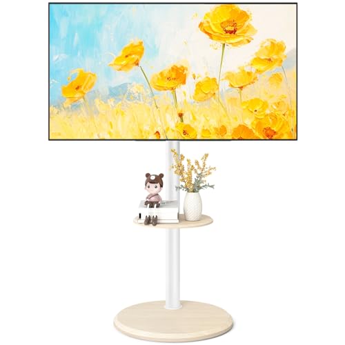FITUEYES Desig Modern TV Carts for 32-65 Inch Televisions,Floor TV Stands with Wheels Corner Rolling TV Cart Fits Max VESA 400x400mm, V2 Television Cart,White, Master Series