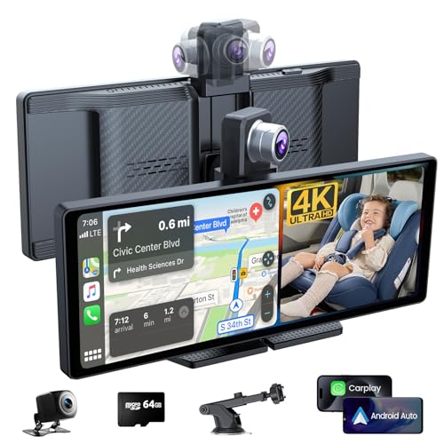 9 inch HD Portable Wireless carplay Screen for car & Android Auto Touchscreen with 4K Dash Cam/1080P Backup Camera/Mirror Link/Navigation/Voice Control/Car Stereo/Drive Play/Bluetooth