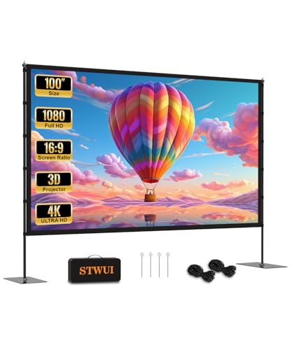 Projector Screen and Stand 100 Inch Portable Outdoor Projection Screen 16:9 4K HD Movie Projection Screen with Carry Bag for Indoor Outdoor Home Theater Film Night Party Camping Foldable Anti Crease