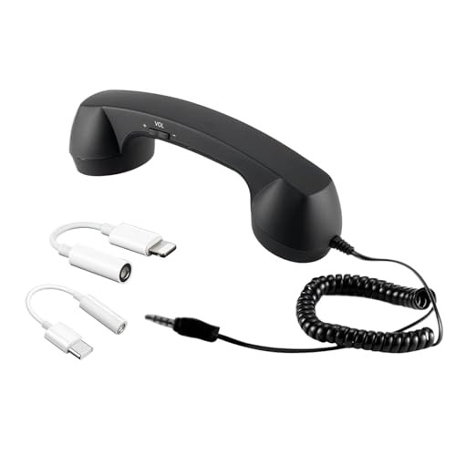 Vintage Retro Telephone Handset, Cell Phone Receiver MIC Microphone Speaker for Cellphone, Smartphone and Computers, Old Telephone Headse with 3.5 Mm Socket (Black)
