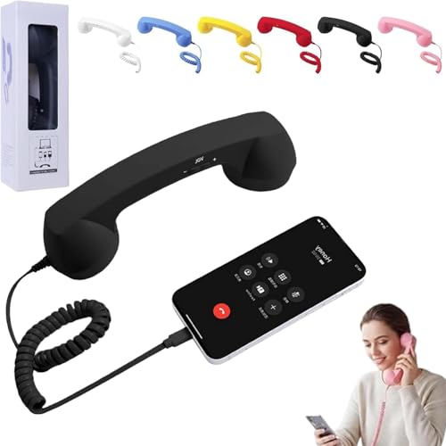 Retro Phone Handset, Type-C Retro Phone Handset for iPhone and Android, Pop Phone RetroHandset, for Cell Mobile Video Conferences, Calls, Meetings (Black)