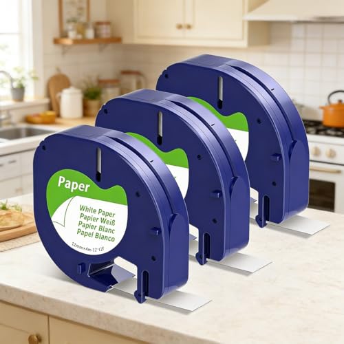 5PK Letratag Label Tape 91335 S0721650 Plstic Compatible with Dymo LT Refills for LT-100H LT-100T QX50 Label Maker,Black on Blue,1/2inch (12mm)