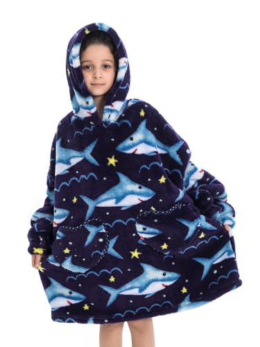 Oversized Blanket Hoodie Sweatshirt Kids, Warm Fleece Hooded Sweater with Pockets for Boys Girls One Size Fits 7-14T