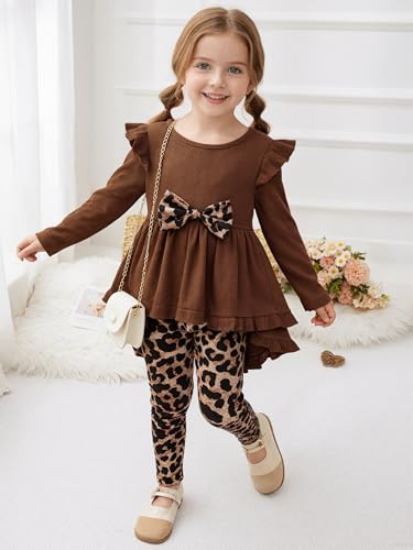 ggudd Girl's Leopard Long Sleeve T-Shirt Tops and Leggings Pants 2Pcs Clothes Sets for 2-8 Years