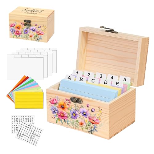Personalized Wooden Recipe Box, Custom Wildflowers Recipe Index Card Holder, Mother's Day Gift for Mom, Recipe Box Set Optional with 300 Cards, 10 Dividers, 2 Letter Sticker, Gift for Mom Wife, Bridal