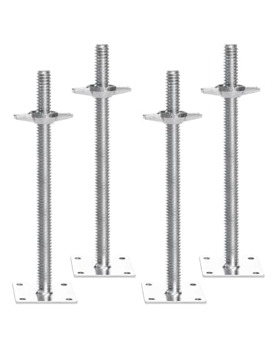 Petour 4 Pcs Solid Jack Scaffolding Equipment Set, 18" Adjustable Screw Jacks, 1-1/4" OD Base Plate Silver Leveling Jacks Galvanized Screw Solid Stem Scaffolding Legs with Base Plate