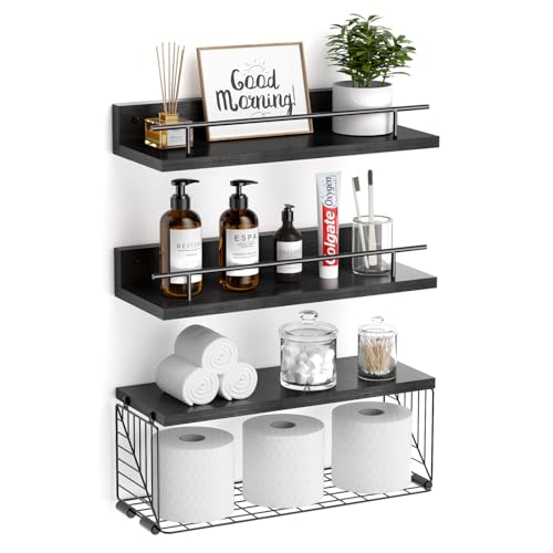 OTK Over-The-Toilet Storage, 3 Tier Bathroom Organizer Shelf, Freestanding Space Saver with Toilet Paper Holder, Multifunctional Over The Toilet Rack, Black