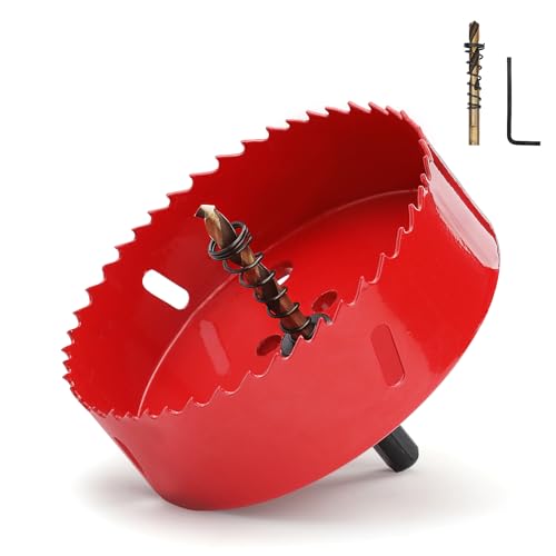 6 1/4 Hole Saw, 159mm HSS Bi-Metal Hole Saw, 6.25 Inch Hole Saw for Recessed Lights, 32mm Cutting Depth Hole Cutter with Arbor Mandrel for Metal, Wood Boards, Drywall and Plastic, Red