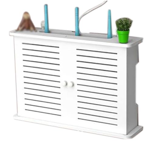 Homode Router Shelf, Wood Wifi Box Hider, Projector Shelf Stand, Router Modem Storage Box Power Strip Cable Management Hider Rack, Routers Cover Organizer for Office Home, Rustic Brown