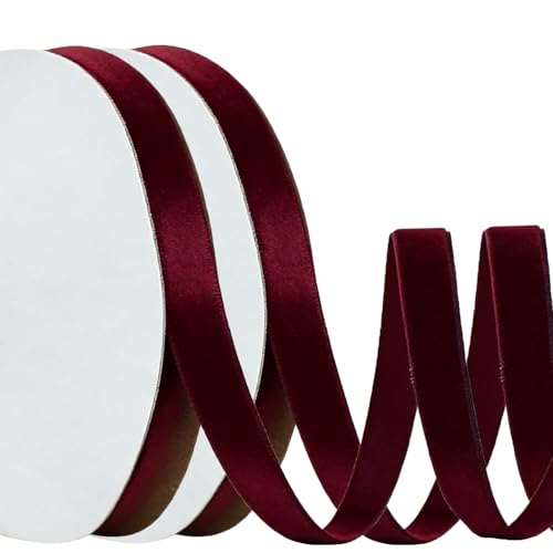Keypan Red Velvet Ribbon for Christmas Tree - 1 1/2 inch Wide Handmade Fringe Fabric Ribbons for Gift Wrapping, Baby Shower, Flower Bouquet