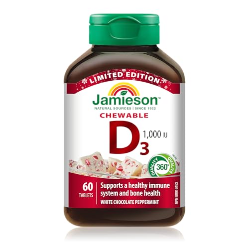 Jamieson Vitamin D3 1,000 IU Gummies, Orange, Lemon, and Strawberry Flavours, Supports Immune Health, Strong Bones and Teeth. Vegetarian, Non-GMO, Gluten-Free, No Artificial Flavours or Colours, 130 Count Proudly Canadian