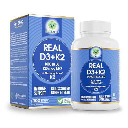 Nutrawave Pure and Extra Potent Vitamin D3 K2 (MK-7) - 1000IU / 120mcg 鈥 Maximum Absorption - Bone, Teeth & Immune Support, Non-GMO, 120 Vegan Capsules (4-Month Supply)