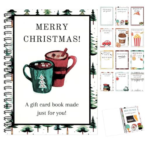 Christmas Gift Card Book - 10 Page Greeting Card Holder Booklet Album with Hardcover & Spiral Binding, DIY Gift for Family, Friends & College Students to Keep Holiday Memories