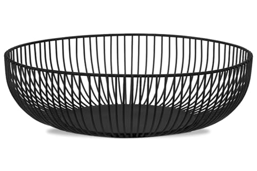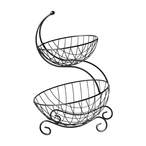 2-Tier Countertop Fruit Basket with Wooden Handle for Kitchen and Dining Room, Fruit Bowl Vegetable Bread Holder Storage Display(Black)