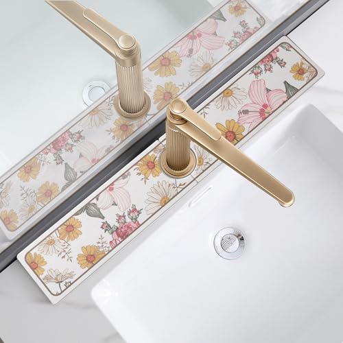 Gelecek Kitchen Sink Splash Guard, 14.6鈥 x 5.5鈥 Silicone Sink Faucet Mat, Sink Draining Pad Behind Faucet, Faucet Splash Catcher, Keep Kitchen and Bathroom Sinks Dry, Beige White