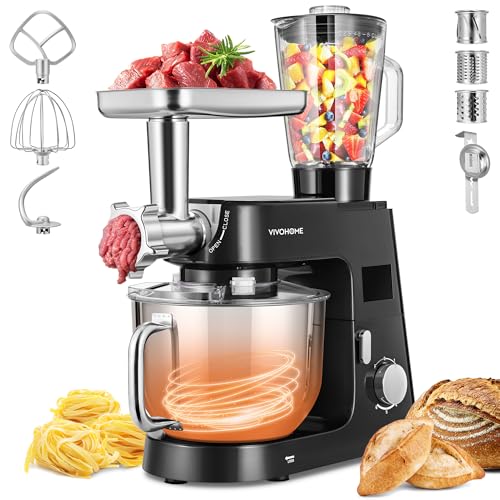 CHeflee - Stand Mixer, 660W 6+P with 6.5 Quart Stainless Steel Bowl, Dough Hook, Wire Whip and Whisk, for Most Cooks,Silver