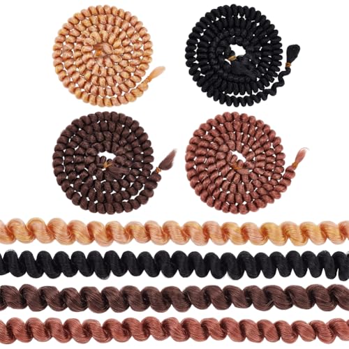 PH PandaHall 4 Colors Doll Hair Wig Long Curly Wig Mohair Hair Wefts Faux Hair Extensions Fake Dolls Hair Figurine Wigs for DIY Craft Doll Hair Replacement Making Art Supplies 11-17cm