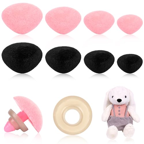 CHGCRAFT 290Pcs 8 Sizes Plastic Nose Craft Triangle Nose with Half Drill Hole Safety Noses for Stuffed Animals Amigurumi Puppet Crochet DIY Making, Black and Pink, 7-13mm Length