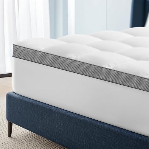 Bedlore Mattress Topper Queen Size, 4 Inch Memory Foam Mattress Topper Dual Layer Medium Support, 2 Inch Cooling Gel Memory Foam Plus 2 Inch Pillow Top Mattress Pad Cover for Back Pain