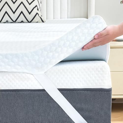 QUINEEHOM Mattress Topper Queen 2 Inch, Cooling Gel Infused Foam Mattress Topper with Airflow Egg Crate Design, Certipur-Us Certified