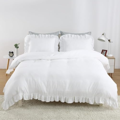 feelyou Floral Duvet Cover Set King Vivid Flowers Bedding Set for Kids Girls Teens Women Pastoral Plants Branches Print Quilt Cover Set Polyester White Green Comforter Cover with 2 Pillow Shams, 3Pcs