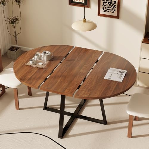 SUZEPER Round Kitchen Dining Table Set for 4, Space Saving Table and Chairs Set with Thick Tabletop 4 Upholstered Chairs, Dinning Room Modern Casual Coffee Table Set(D 31.5inch/80cm, Light grayA)