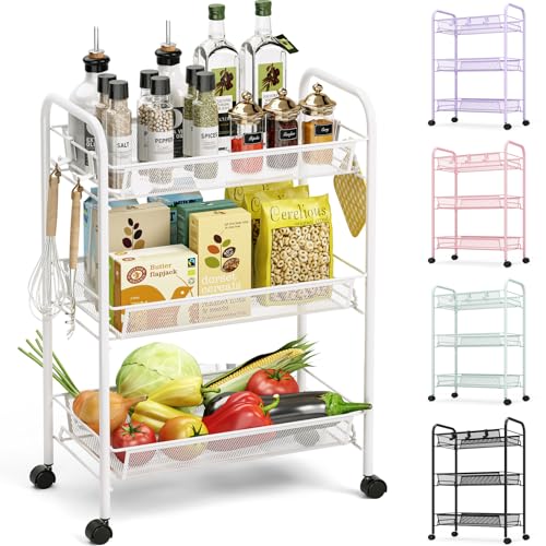 HOOBRO Kitchen Island with Power Outlet, Kitchen Storage Island with Spice Rack and Drawer, Rolling Kitchen Cart on Wheels, for Home, Kitchen and Dining Room, White and Natural WN82UZD01G1