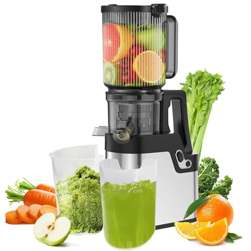 Juicer Machines, Cold Press Juicer with 4.2'' Large Feed Chute, Fit Whole Fruit and Vegetable Slow Juice Extractor Machine, 250W Masticating Juicer Easy To Clean, High Juice Yield, BPA Free (Black)
