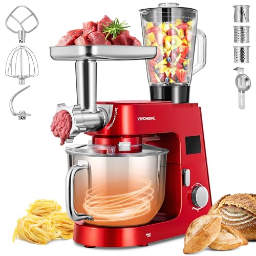 VIVOHOME 7.5 Quart Stand Mixer, 660W 6-Speed Tilt-Head Kitchen Electric Food Mixer with Beater, Dough Hook, Wire Whip, and Egg Separator, Red