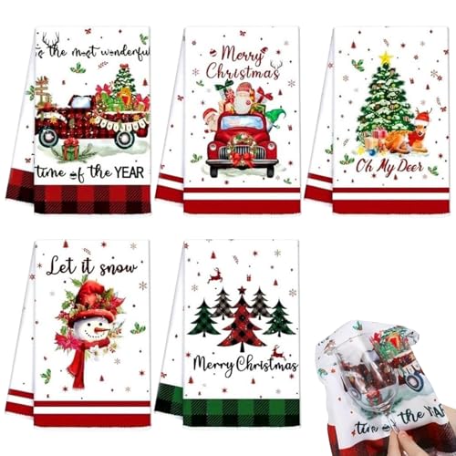 Christmas Hanging Kitchen Towels Winter Buffalo Plaid Red Truck Xmas Tree Hand Towel with Hanging Loop Black and White Check Christmas Dish Tie Towels Fast Drying Washcloth for Bathroom Set of 2