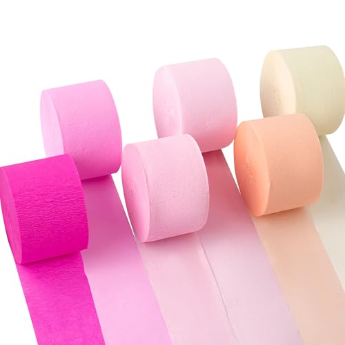 Pastel & Gold Color Crepe Paper Streamer Rolls Hanging Party Decoration Total 490-Feet, 6 Rolls, Birthday Party Streamer for DIY Art Project Supplies, Baby Shower