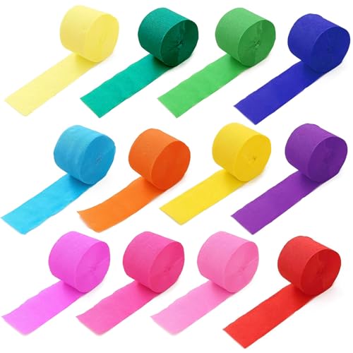 12 Colors Crepe Paper Rolls, Pastel Rainbow Crepe Paper for Flower Making Kit Papel Crepe with Floral Iron Wire and Tape for DIY Gift Wrapping Paper Crafts Streamers Pi帽atas (9.8 x 98 Inches)