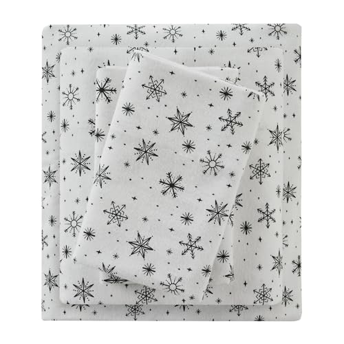 True North by Sleep Philosophy Cozy Flannel Warm 100% Cotton Sheet - Novelty Print Animals Stars Cute Ultra Soft Cold Weather Bedding Set, Twin, Pink/Grey Snowflakes 3 Piece