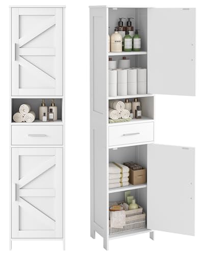SoBuy Tall Storage Cabinet, Slim Bathroom Cabinet with Adjustable Shelves, Space-Saving Kitchen or Pantry Cabinet, Anti-Tipping Floor Standing Unit White BZR34-W